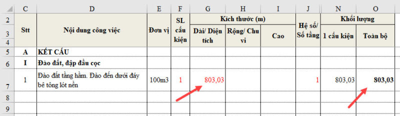 Khối lượng sai đơn vị: Đơn vị là 100m3 nhưng khi điền khối lượng lại là m3