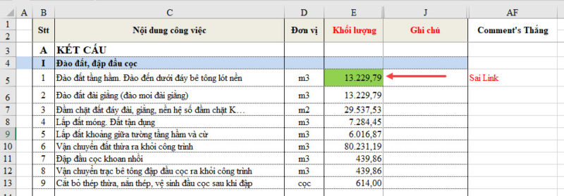 Lỗi này cũng cực kỳ nguy hiểm, link sai trong nội bộ một bảng tính tính toán hoặc link từ BOQ vào bảng tính toán… Dân gian gọi lỗi này là “dâu ông nọ cắm cằm bà kia” đấy!