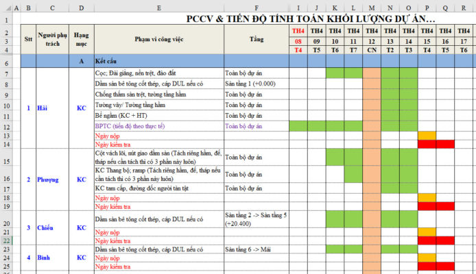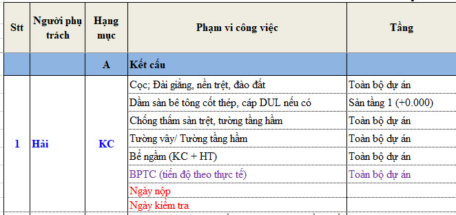 Phạm vi công việc đo bóc khối lượng dự án của nhóm