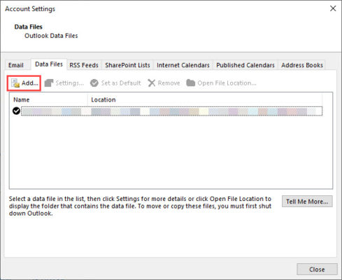 Trên máy tính khác bạn lặp lại bước cài đặt tích hợp Email công ty vào Outlook như bài viết này. Sau đó tiến hành add database đã copy về vào Outlook này, trong tab Data Files: