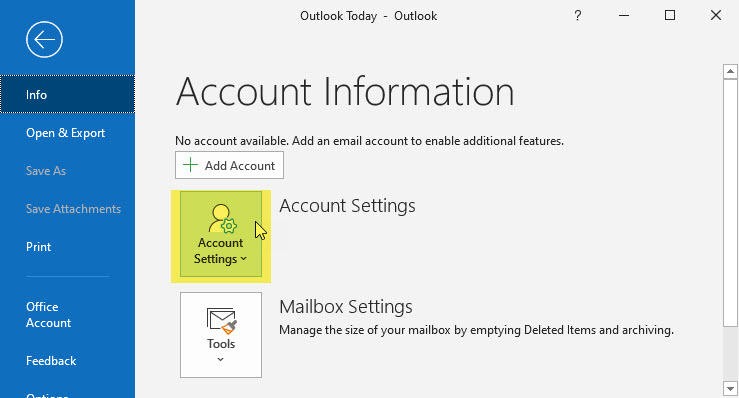 Trong tab Info, bấm vào Account Settings/ Account Settings