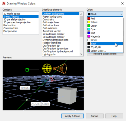 Cài đặt Background Layout AutoCAD thành màu đen để dễ xem bản vẽ