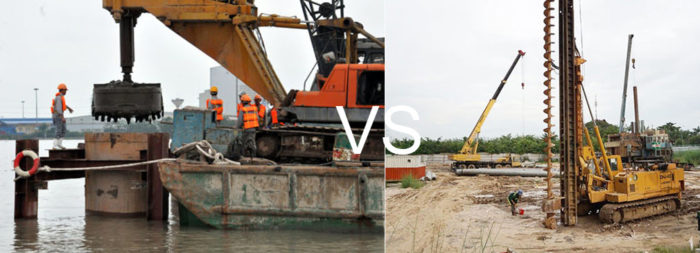 - Biện pháp thi công/ điều kiện thi công: Việc đầu tiên các bạn cần để ý là khoan trên cạn hay dưới nước. Chi phí cho 2 điều kiện thi công này cực kỳ khác nhau, khi khoan dưới nước chúng ta phải tính thêm rất nhiều chi phí khác như thuê phà, cừ vây nước, chi phí trung chuyển vật liệu trên sông…