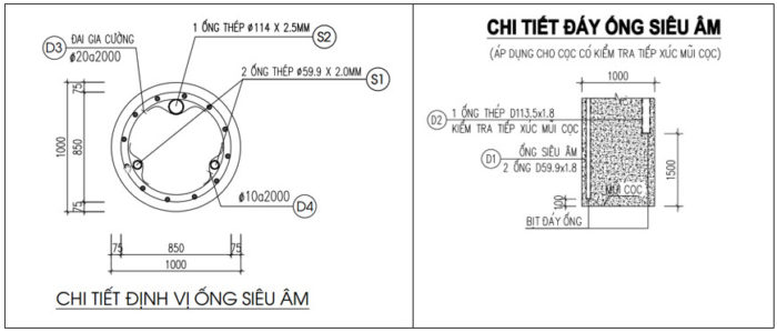 Thông thường 100% các cọc đều đặt ống siêu âm/ Khoan lõi DN114 và DN60 để kiểm tra chất lượng bê tông cọc (có bị khuyết tật, “thối”). Tuy nhiên cũng có CĐT tiết kiệm nên không đặt toàn bộ ống siêu âm. Dù có đặt 100% hay không thì thí nghiệm siêu âm lại là vấn đề khác nhé. Không phải cứ đặt OSA là bắt buộc phải thí nghiệm, phần trăm được cọc thí nghiệm ngẫu nhiên được quy định trong ghi chú của thiết kế. Các QS phải hết sức lưu ý chỗ này để tính đúng chiều dài OSA và số cọc thí nghiệm siêu âm/ khoan lõi. Ống DN114 dùng để khoan lõi và cũng dùng để siêu âm.