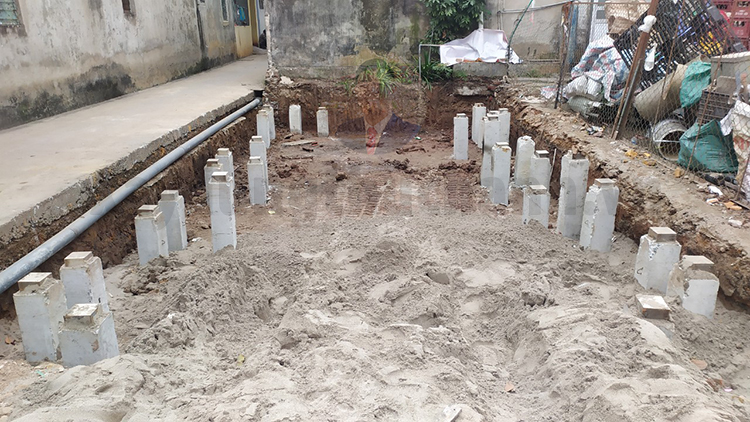 Khoảng cách từ mép cọc tới nhà hàng xóm chỉ cần khoảng 200-250mm là được