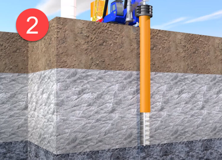 Khoan tạo lỗ bằng mũi xoắn kết hợp hạ dần ống vách thép xuống hố khoan. Ưu điểm lớn nhất của phương pháp này là mặt bằng sạch sẽ do không cần sử dụng thêm vật liệu giữ thành như bentonite, cực kỳ phù hợp với địa chất có nhiều cát. Dĩ nhiên chiều sâu cọc của phương pháp này cũng bị giới hạn như cọc ép.