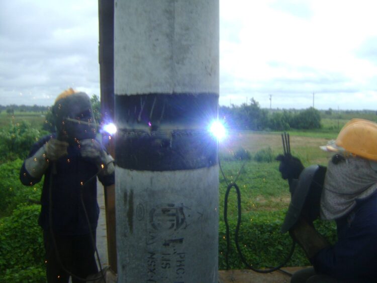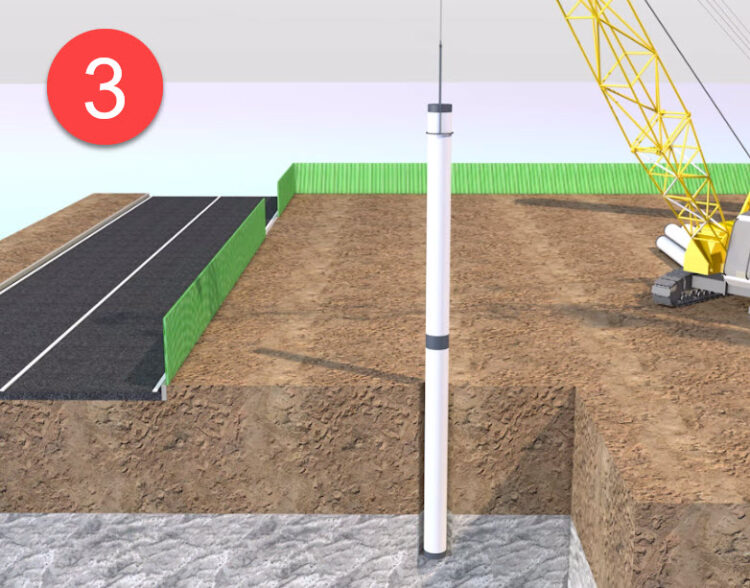 Đầu tiên đơn vị thi công sẽ khoan một lỗ dịch vụ, mục đích để thả cọc đúc sẵn DUL vào hố để tiến hành hàn nối các đoạn cọc trước khi thả chúng vào hố cọc.