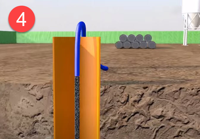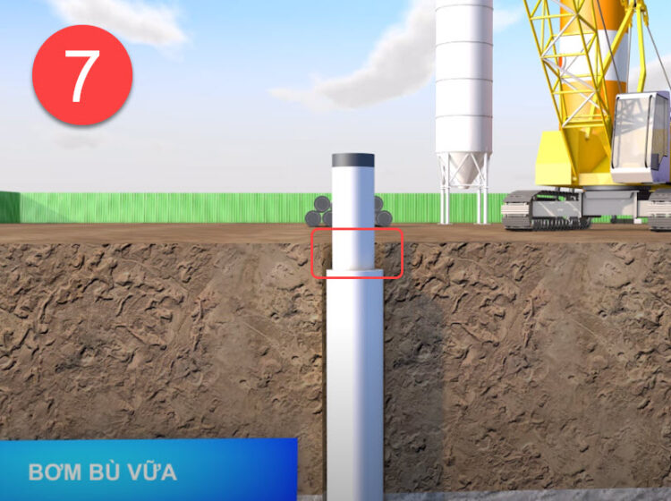 Vữa sẽ bị tụt khi rút ống vách lên do bị thấm vào đất, cát; ở bước này vữa xi măng sẽ được bơm bù đầy trở lại.