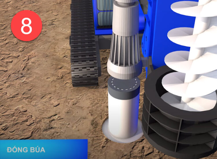 Đóng búa vào đầu cọc để tạo ma sát liên kết giữa cọc và vữa; vữa và đất