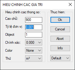 + Nếu tỷ lệ đơn vị là 0.001: Kết quả xuất ra sẽ là m2 (nếu đơn vị thể hiện trên bản vẽ là mm).
