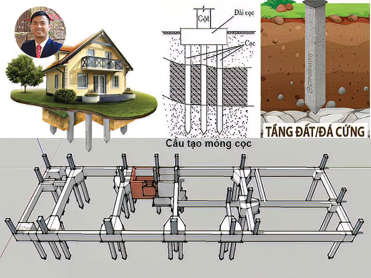 Minh họa móng cọc dưới nhà